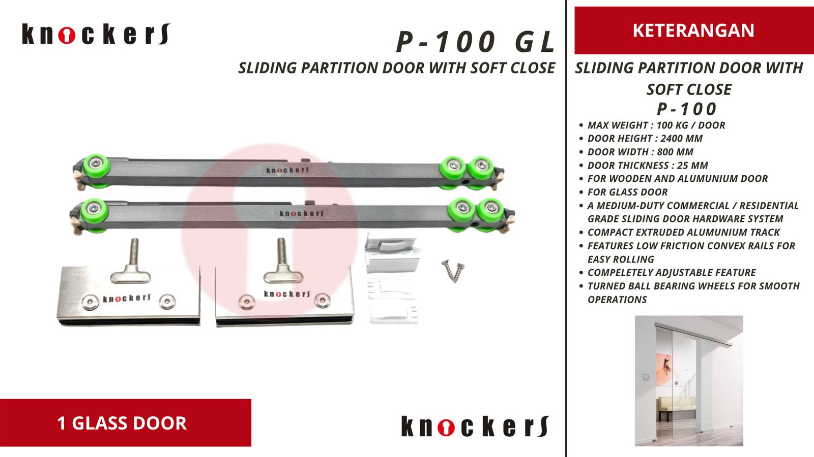 Tersedia beban 100Kg/pintu. (MAG 100)
